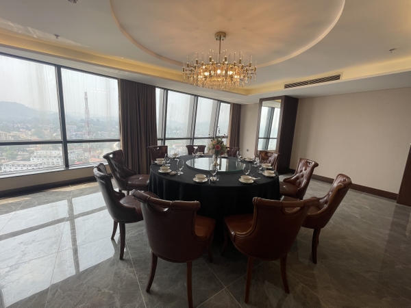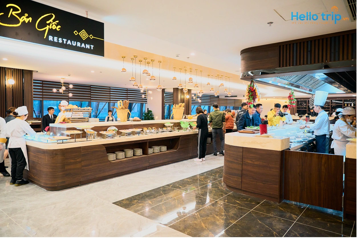 Nằm ở tầng 3 của khách sạn, nhà hàng phục vụ bữa sáng buffet, thực đơn gọi món cả ngày với các món ăn Á Âu và các món đặc sản của Cao Bằng.