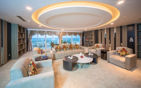 Diện tích 600m2 nằm ở vị trí độc đáo duy nhất của toà nhà, với góc nhìn đẹp, không gian mở và lối thiết kế sáng tạo. Phòng gồm hai phòng ngủ một giường đôi, hai giường đơn và một phòng khách với bàn làm việc quầy bar, bếp, bàn ăn, sofa được thiết kế tinh xảo và đầy đủ tiện nghi với các trang thiết bị hiên đại khác như phòng quầy bar, phòng xông hơi, bồn tắm nằm... Phòng áp dụng cho 02 người lớn và trẻ dưới 12 tuổi.