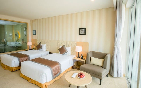 Phòng có diện tích 37m2, gồm 02 giường đơn cỡ nhỏ 1,2m x 2m, bàn làm việc, phòng tắm đứng. Phòng áp dụng cho 02 người lớn và trẻ dưới 12 tuổi. Tiền phòng bao gồm: Bữa ăn sáng; Hồ bơi, phòng tập Gym.