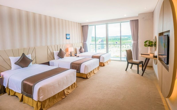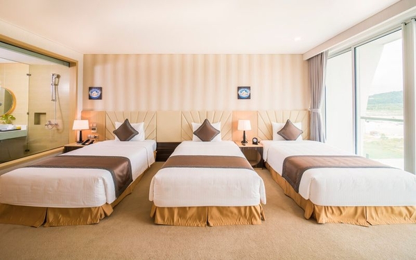 Phòng có diện tích 40m2, gồm 03 giường đơn kích thước nhỏ 1,2m x 2m, bàn làm việc, phòng tắm đứng. Phòng áp dụng cho 03 người lớn và trẻ dưới 12 tuổi. Tiền phòng bao gồm: Bữa ăn sáng; Hồ bơi, phòng tập Gym.